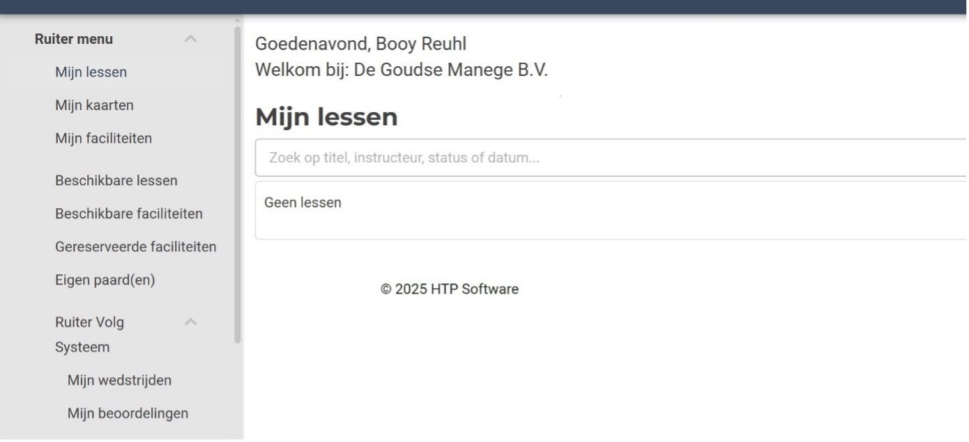 Op deze pagina zie je welke lessen je kunt reserveren. Deze reservering komt bij de manege binnen, welke deze aanvraag zal beoordelen. Hiervan ontvang je een email. Ook wijzigt de lesstatus dan op de pagina Mijn Lessen.